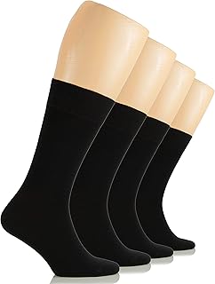 Hugh Ugoli Women's Bamboo Diabetic Crew Socks, Thin, Loose Fit, Soft, Wide Stretchy, Seamless Toe, 4 Pairs